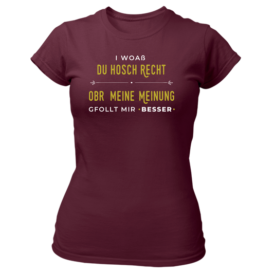I woaß du hosch recht, obr meine Meinung gfollt mir besser - Damenshirt Premium